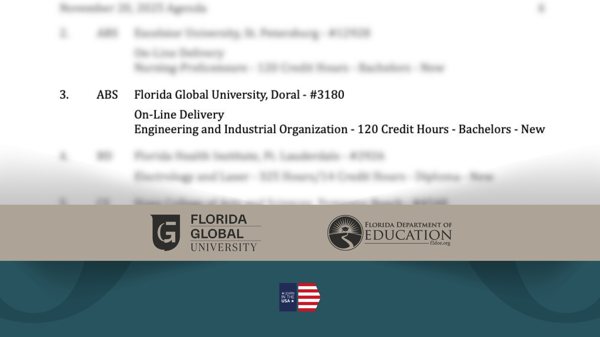 We are pleased to announce that today, November 20, 2025, the Commission for Independent Education (CIE) of the Florida Department of Education (FLDOE) approved our new undergraduate program: the Bachelor of Science in Engineering and Industrial Organization.